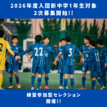 ジュニアユースチーム2026年度入団選手2次募集開始!!
